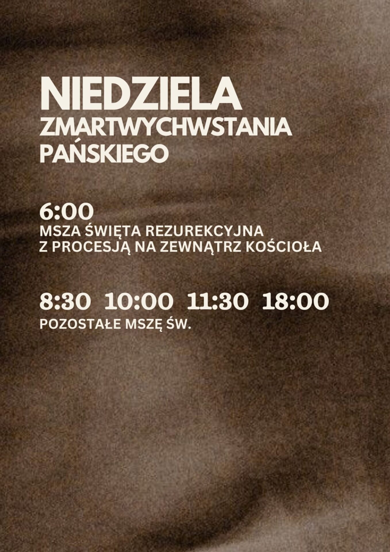 Msza św. Rezurekcyjna o godz. 600 z procesją na zewnątrz kościoła;
