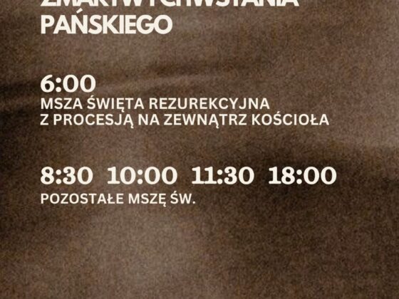 Pozostałe Msze św. o godz.: 830, 1000, 1130 i 1800.